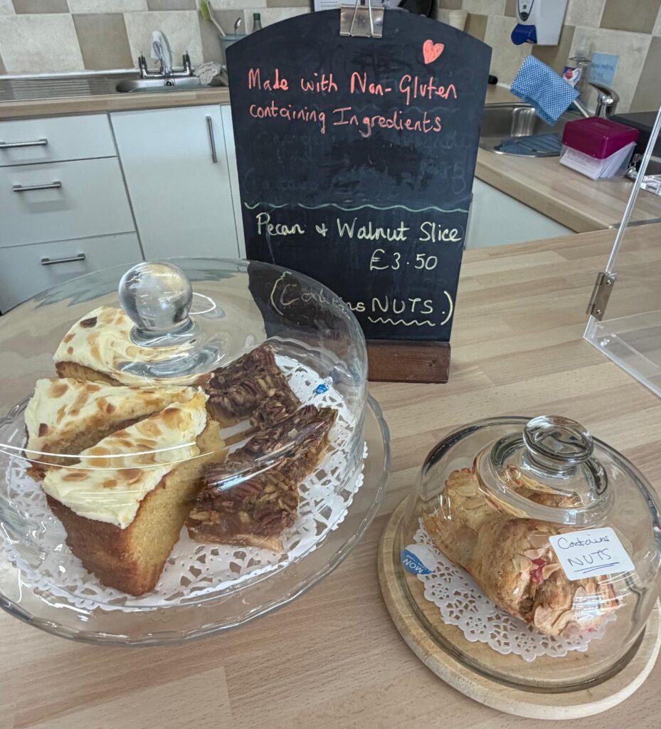 From our menu you can enjoy a sandwich or a toastie and/or a sweet treat. Our sweet treats are made in the village by one of our volunteers at Chapel House Bakes.
